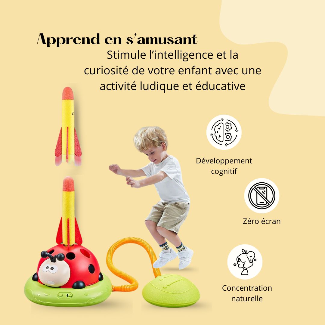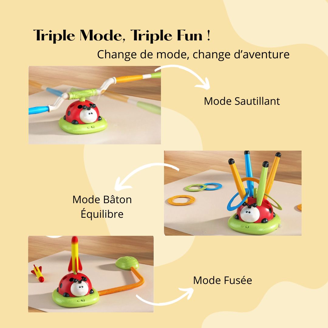 Avec Hopili™, un seul jouet suffit pour TROIS expériences inoubliables : lancer de fusée, saut à l’élastique tournant, et jeu d’anneaux. Chaque activité stimule l’énergie naturelle de votre enfant tout en le tenant LOIN des écrans. Un jouet VIVANT, plein de COULEURS et d’ÉMOTIONS ! Facile à assembler, sans outils, Hopili™ transforme n’importe quelle pièce ou jardin en terrain d’aventure. Idéal pour les enfants de 3 à 12 ans !